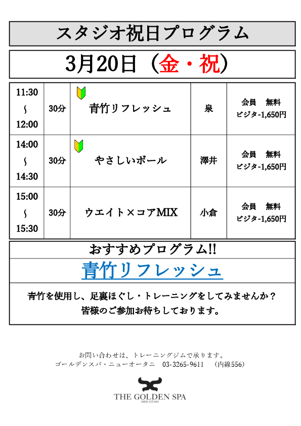 スタジオ祝日プログラム(3月20日)